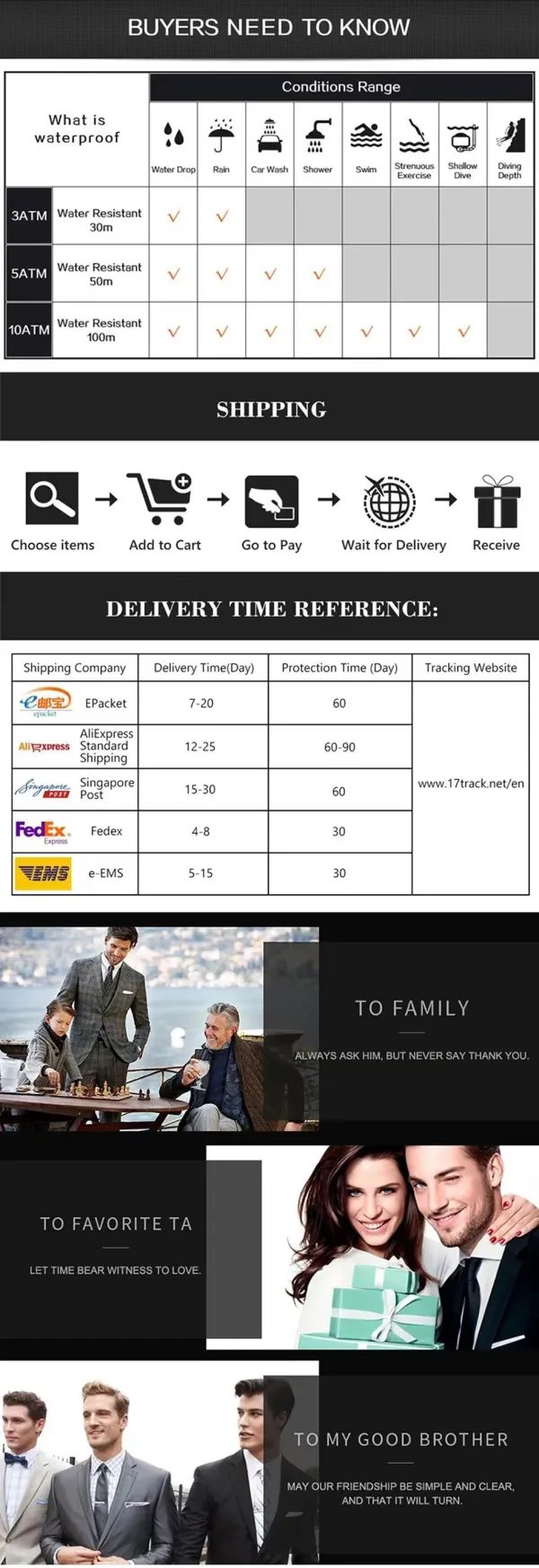 In order to ensure the quality of the product, the overall production and assembly procedures of the watch are all done in the original factory. Important processes such as assembly, shock absorption, waterproofing and accurate testing of the movement are all carried out under very strict quality management, which is accurate, reliable and durable.