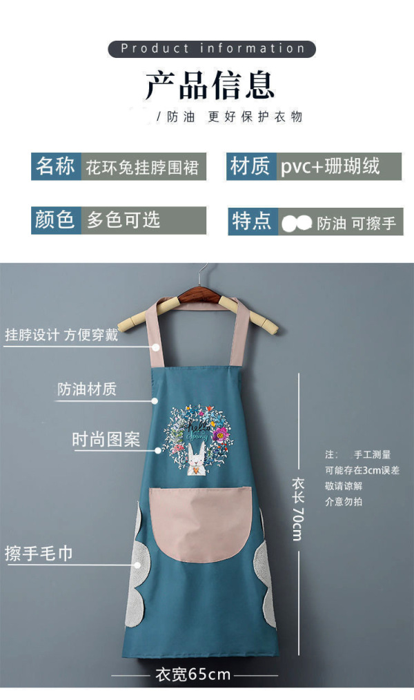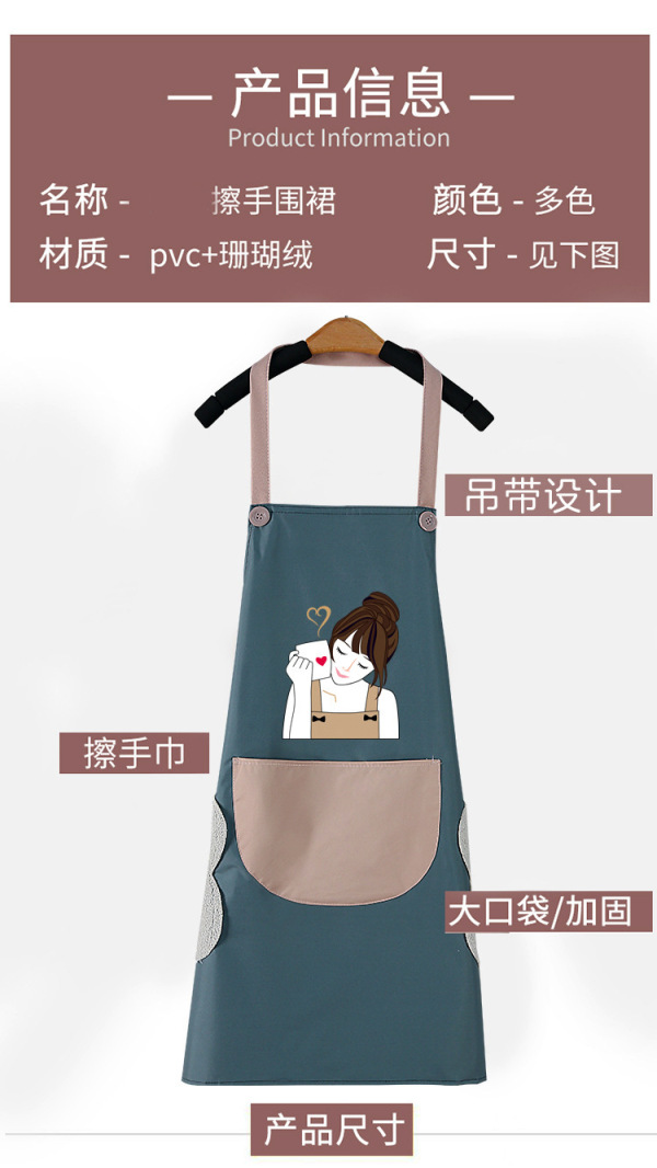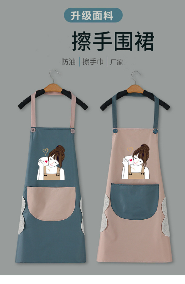 Wipable apron kitchen household oil-proof female apron lovely adult men and women cooking work clothes apron